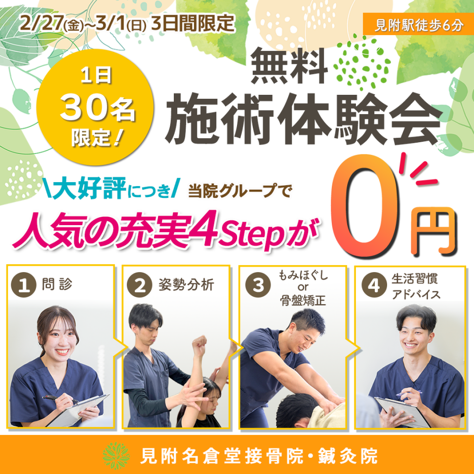※保険適用の方は初検料1,800~3,300円がかかる場合がございます。